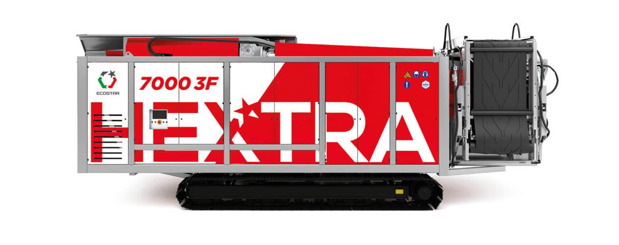 Hextra 7000,使用無線控制器移動至任何位置,就地運行。驅動軸外層由高強度、耐磨材料製成,DDS系統能防止長絲條狀的材料纏繞在軸上,遇到材料纏繞在軸上時,將啟動自我清潔系統,軸會反轉排除狀況,因此能大幅減少停機情形。可以更快的篩選材料 (1m/sec),使用佔地空間更少且生產力高達 200T/H,使用更高質量的組件,以達到最大的可靠性並降低維護成本。
